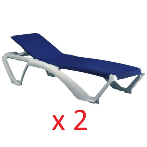 Resol Marina Sun Lounger - White Frame with Blue Canvas Material - Pack of 2 Loungers