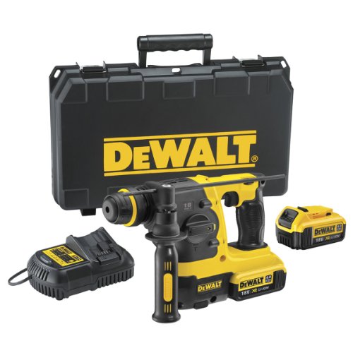 Dewalt DCH213M2 18 Volt XR Lithium Ion SDS+ 3-Mode Rotary Hammer Drill complete with 2 x 4Ah batteries, charger and kitbox33% more runtime than the equivalent model with 3Ah batteriesFeatures:Ideal for drilling anchors and fixing holes into concrete, brick and masonry from 4mm to 20mmRotation stop mode for light chiselling in plaster, tiles and render and impact stop mode for rotary only drilling in wood and metalNew 4.0Ah 18 Volt Lithium Ion battery, delivers high performance, long life and maximum runtimeBest in class vibration, 6.9m/s reduces user fatigue and maximises operating periodsBright white LED with delay feature improves visibilityComes with:2 x 4.0Ah li-ion batteriesMulti-voltage battery chargerMulti-position side handleHeavy duty carrying caseVoltage: 18 VBattery Capacity: 4.0 AhPower Output: 300 WattsNo Load Speed: 0-1100 rpmImpact energy (EPTA 05/2009): 2.0 JBlows per Minute: 0.4200 bpmTool Holder: SDS-PlusMax. Drilling Capacity Wood: 26 mmMax. Drilling Capacity Metal: 13 mmMax. Drilling Capacity Concrete: 20 mmLength: 270 mmHeight: 192 mmHand/Arm Vibration: 8 m/s2Net Weight: 2.9kgTotal Shipping Weight: 8kg