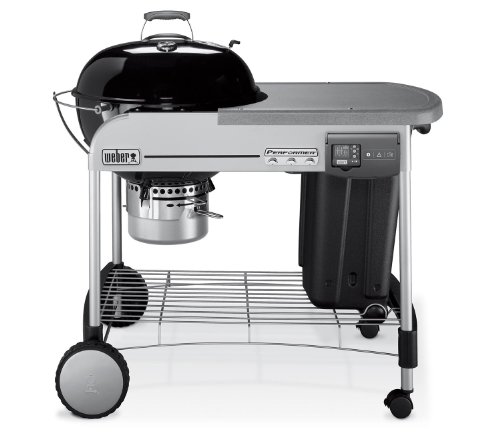 - Lid mounted thermometer. - Weather-proof handle with a protective heat shield. - Hinged cooking grate triple-plated and rust resistant. The useful hinge allows you to add more coal when required. - Tuck-Away lid holder allows you to simply lift the lid and glide it into position, freeing up your hands while you turn your food. - One-Touch cleaning system makes cleaning hassle free as ashes are sifted into the removable ash catcher. - Rust-proof removable ash catcher. - Fire and rust-resistant lid and bowl are made from steel and porcelain-enamel coated inside and out. This makes them weather-proof and extremely durable. - Rust-proof aluminium vents provide the proper airflow for perfect barbecuing. - Integrated Thermoset work surface. - Gas ignition; light charcoal briquettes at the touch of a button. - Three tool holders. - CharBin. - Lockable castors secure the barbecue safely in place. - Glass-reinforced nylon handles.