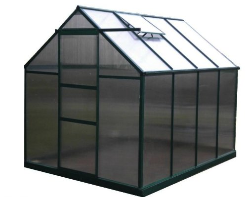 POLYCARBONATE 8' X 6' GREENHOUSETWIN WALL POLYCARBONATE UV PANELS WITH POWDER COATED ALUMINUM FRAME AND GALVANISED STEEL BASEWith2 ROOF VENTS The twinwall polycarbonate panels used in the greenhouse are strong and safe , ideal for environments where there are children and pets. Polycarbonate blocks out 99.9% of harmful solar UV. The polycarbonate is easy to clean and just requires warm soapy water and a cloth to keep it looking in A1 condition. Polycarbonate is incredibly strong and the impact strength is 200x stronger than glass . The twinwall panels are designed specifically so they trap air within the sheet and so provide outstanding thermal insulationUnfortunately due to the size of the item we are unable to ship to channel islands,highlands or northern ireland