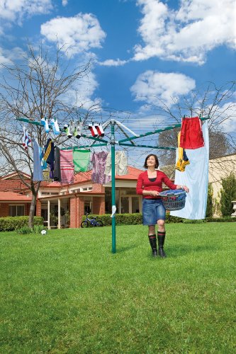 Medium, 7 line, folding head rotary clothesline - holds queen size sheets Huge 47m of line holds a large family wash (ideal for 3-5 people) Low loading position - easily winds up for maximum drying efficiency Stylish ergonomic design; powder coated rust resistant tubing Needs only 4.5m diameter garden space; 3.6m head diameter Self-retracting line retainer; traditional winding handle mechanism Assembled and pre-wired, ready to install; ground socket included Can be removed from the ground socket and stored 10 year peace of mind guaranteeManufactured using a high grade steel and treated for corrosion resistance, the hoist is galvanised with zinc for complete protection from the elements.