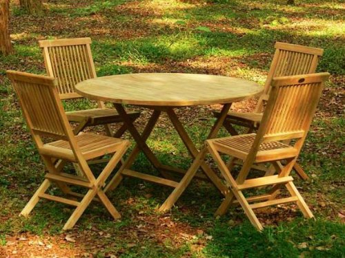 This solid wooden Teak furniture set is made from A-grade premium quality Indonesian timber from sustainable plantations. The set includes a foldable round table and four foldable chairs that can be easily stored away out of season. It is suitable for most size gardens and would be ideal for dining and entertaining outdoors during the summer months.