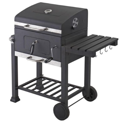 One of the best charcoal grills on the market - and for the price its a whole lot of grilling too!Packed with features normally seen on a "grande BBQ" The Toronto Charcoal BBQ is supplied ready to assemble and has great features such as a lid and trolley. A built in temperature gauge allows you t ocontrol the temperature for different styles of cooking such as low and slow smoking or high temperature steak grilling - all topped of with a bottle opener for the chefs beer!Having an adjustable Grill height, using the crank handle on the front - allows you to further control the temperature for grilling, in addition to using the lid. At the front of the BBQ is a small door that allows you to place more charcoal or wood chips with out lifting the lid or disturbing the food being cooked!This charcoal BBQ will provide great service for many years.The capacity should be enough for 2.7 kg of charcoal briquettes or 1.35 kg of charcoal, which is sufficient for cooking as long as 3 hours. The fire pan itself measures 60.9 x 45.7 inches.- Grill area: 2 x 41.9 x 28.7 cm - warming plate: 53.9 x 24.1 cm - 2 enameled cooking grates - chrome warming rack & Lid with stainless handle - Thermometer - Height adjustable by crank handle Grill - Easy access hatch to the charcoal tray for topping up the charcoal and wood chips! - Bottle opener & 4 cutlery hooks on the side tray. Total Dimensions - (W / D / H): 100 x 67 x 104 cm