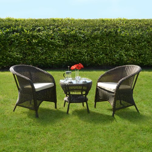 Azuma 3 Piece Marseille Wicker Rattan Garden Bistro Furniture Table & Chair Set