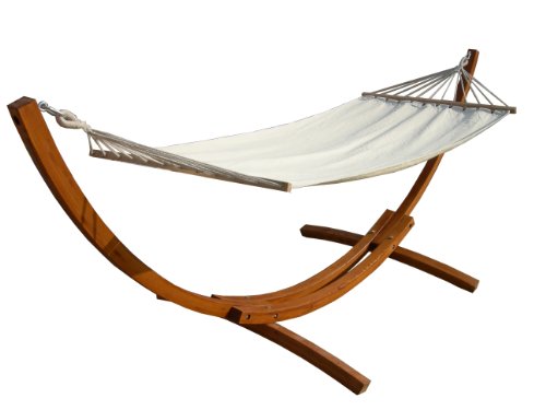 This comfortable and practical hammock is ideal for lounging and relaxing in the garden. The stand is made from solid, durable larch wood with a cream cotton canvas hammock. Its curved arc stand is attractive and stylish and would be a key focal point in any garden.