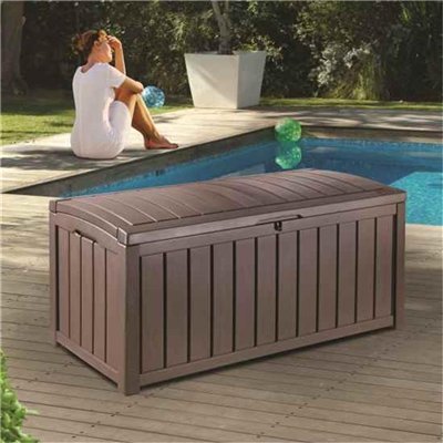 The Keter Glenwood Plastic Garden Storage Box from Keter is ideal for storing garden cushions and pool supplies. The Keter Glenwood Plastic Garden Storage Box can also double up as a garden seat for 2 adults. The box is completely water tight but still allows for ventilation. The hydraulic lid mechanism makes opening and closing the box effortless.