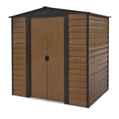 6'4" x 4'11" FT (1.9 x 1.5m) Metal Shiplap Woodgrain Effect Apex Garden ShedThis premium 6x5FT shiplap-wood-effect metal apex shed offers the appearance of a timber shed and the durability of a metal shed and is fire and rot resistant. The door is positioned on the 6FT length, ensuring easy access to all of your concealed items. Wall height 181 cm (5FT 11')This attractive low maintenance metal shed is pre-painted in a light coffee colour. Padlock and Floor not included.Available in 5 sizes.