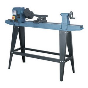 Manufactured to comply with CE requirements. Powered by smooth operating 450Watt induction motor. Plate clutch allows seamless speed changes without the need to stop the motor and adjust belts and pulleys. Hollow centred head and tail stocks allow hole boring. One-piece machined lathe bed with head stock extension for bowl turning and sanding operations. Head stock rotates through five preset positions for outboard bowl turning. Includes floor stand and BS approved 3 pin plug.