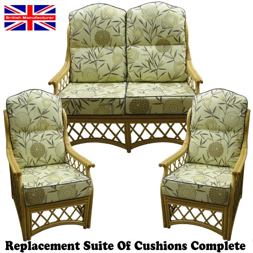Hump Back NEW CANE SUITE CUSHIONS Conservatory Wicker Rattan Furniture by GILDA (Bamboo Natural with Grey Piping)