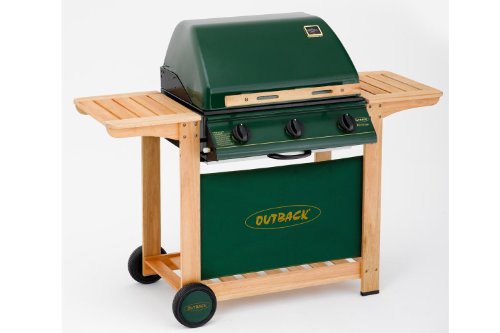 Outback Hunter 3 Burner Hooded Gas Barbecue - Modern Classic with FSC Wood Trolley. - Includes BBQ Cover and Gas Reg