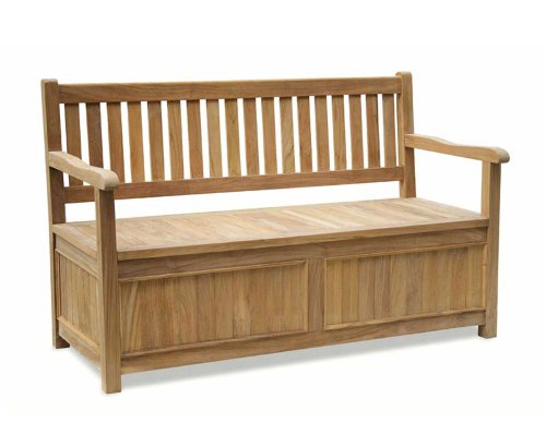 - Our teak garden storage bench with arms is an outdoor bench box manufactured in the traditional manner with mortise and tenon joints and teak dowels for strength and durability.
