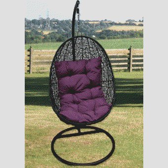 Rattan Swing Chair Suspended Black with Purple Cushion