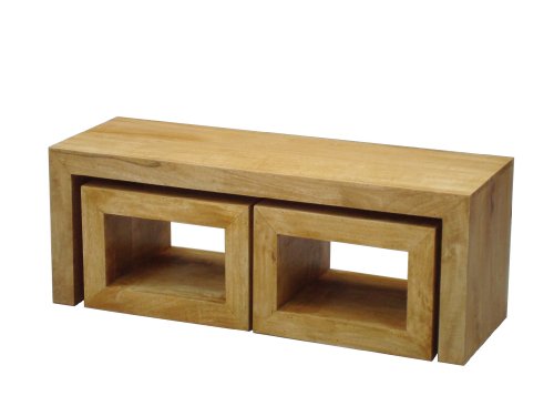 Homescapes - Dakota - Long John Coffee Table with 2 Cubes - Oak Finish - 100% Solid Mango Hard Wood - ( No Veneer ) Hand Crafted Furniture