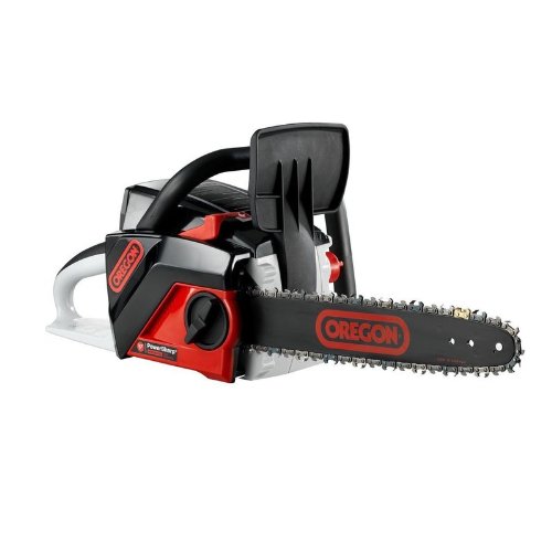 Electric chainsaws have always been clean and quiet, but they've generally lacked the brawn of their petrol-powered brethren. The Oregon CS250 36 volt cordless chainsaw shatters these shop-worn stereotypes. The CS250 is equipped with a long-lasting lithium-ion endurance battery pack and a tough 14-inch bar. As a result, the CS250 can power through logs as large as 10 to 12 inches, or trim up to 250 2- to 3-inch branches nonstop on a single charge. Whether you're removing trees, cleaning up after a storm, pruning large branches, or clearing debris from property, the CS250 chainsaw is up to the challenge. Power Without the Hassle The CS250 chainsaw starts instantly with the pull of a trigger: no frustrating pull cords, no messy petrol cans, and no slow warm-up times. The chainsaw is also much quieter than petrol-powered chainsaws, and is completely silent between cuts. And at just under 11 pounds, the CS250 is easy to wield whether you're cutting a tree trunk below you or a tree branch above. Sharp and Safe The chainsaw comes with a built-in PowerSharp chain sharpening system, so you'll never cut with a dull chain again. When the chain starts to lose its edge, simply pull the PowerSharp lever for three to five seconds with the saw running and the chain will work like new. To protect you while cutting, the CS250 includes such features as a built-in safety chain brake, a low kickback chain/guide bar, a safety trigger interlock, and a patent-pending control board with overload and heat protection. Specifications. Guide bar length: 14 inches Chain type: PowerSharp 52 Links No-load chain speed: 6,400 rpm Oil lubrication system: Automatic Oil tank volume: 5.9 ounces Battery pack model: B400E Battery nominal capacity: 2.4 Ah/89 Wh Charger model: C600 Charging time (approximate): 120 minutes Tool weight (with guide bar, chain, and battery): 10.5 pounds Additional Batteries are Available.