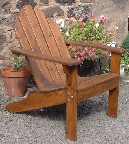 Purchasing your Adirondack Garden Furniture from Scotlands Cottage Accessories ensures: Communication with Peter, your designer and craftsman and Custom made quality Adirondack furniture incorporating the traditional North American style throughout Tangle Woods Range. Constructed entirely in his own workshop in Forfar, Scotland, now in his sixth year of making and selling his range of Comfortable, Stylishly Practical and Competitively priced Adirondack Garden Furniture. The chair will come to you fully assembled and with complete timber preservation and the colour / finish (woodstain) of your choice from the ready mixed ranges from either Ronseal Quick Drying Woodstain (variety of wood shades) or Cuprinol Garden Shades (variety of pastel colours). All fixtures and fastenings are high quality stainless steel. All screws are countersunk and plugged. Peter is happy to give advice on the long term care of your furniture. Measurements of Chair: 96cms High X 77cms Wide X 85cms Back to Front If you require any more information or if you wish to discuss any other products in Peters Adirondack Range of Garden Furniture then Peter will be happy to talk with you on 01307 463900.