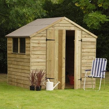 A handsome, spacious double-door overlap apex shed that's ideal for large garden equipment. Lawn mower? Sacks of spuds to store? Firewood? You'll have no problem fitting it all in the 7 x 7 overlap apex double door shed. Yes, that's double doors, so you can move your gear in and out with ease. What's more, this good looking beast will stand the test of time. The 7 x 7 overlap apex double-door shed is pressure- treated - that means it's a truly low-maintenance option and its good looks will last as long as 15 years.