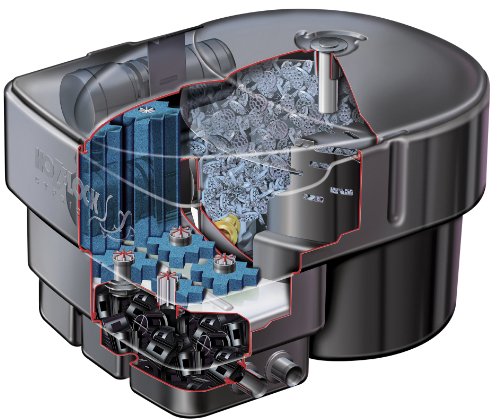 - Complete pond filter package includes pump, filter, UVC clarifier