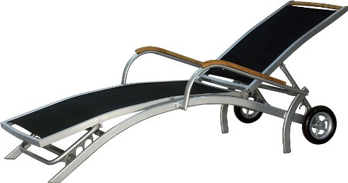 High-quality lounger, modern and elegant colour combination alu / black / teak wood, perfect design, extremely comfortable for sitting / lying - even without cushions.
