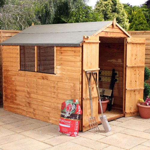 OXFORD: 8FT x 6FT SUPER SAVER OVERLAP APEX SHED WITH DOUBLE DOORS (Solid 10mm OSB Floor)