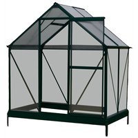 A great GreenHouse for any Garden.Evergreen Greenhouse range offers a brilliant and safe alternative to the conventional glass greenhouse. The polycarbonate glazing used is virtually unbreakable, being light yet strong and very easy to handle - and it won't compromise the safety of your garden if you have pets or young Children. The 4mm thick twin walls of the Polycarbonate glazing provides the extra insulation needed and it is UV treated in order to counter the effects of the harsh Winter Sun. Regardless of this though, it harnesses the power of the Sun to heat the inside of the Greenhouse, efficiently distorting the direct ray's to avoid scorching of delicate leaves and providing the perfect environment for cultivating your plants, grow your fruit and vegetables or just protect your more delicate plants from frosts during the winter.The structure of the building is a Sturdy aluminium frame, supporting the glazing, door and opening windows. This strong material is Powder coated in Evergreen. The high specification of the Powder Coating provides a smooth, even finish that is more appealing to the eye than untreated aluminium frames. Not only is it more aesthetically pleasing but it protects the frame from oxidization for much longer than other coatings, retaining its properties so that your Greenhouse can be up for many years to come.