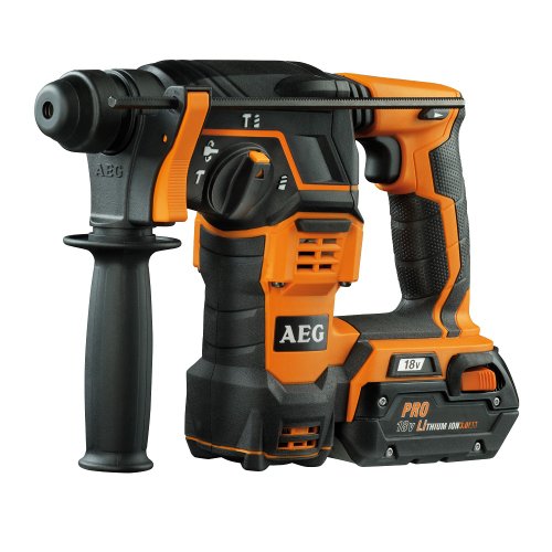 The AEG 18 Volt cordless SDS-Plus 4 mode hammer drill uses ProLithium batteries and features AVS anti-vibration and safety clutch.