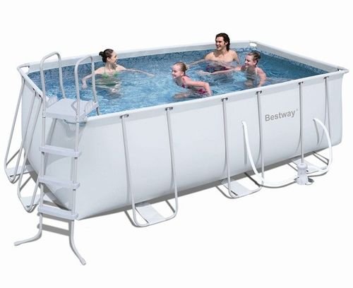 Bestway Rectangular Steel Pro Frame Set Above Ground Swimming Pool - Grey, 13.5 Ft