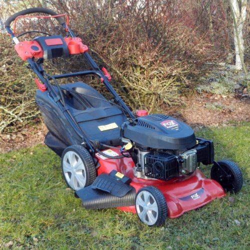 Fox 20" Electric Start Quadcut Petrol Lawn Mower .If you want the portability of a petrol lawn mower but find a recoil starting mower a problem and prefer the ease of a push button start. The Wolf 5.5hp electric start engine comes complete with built in battery and mains top up charger. Fitted with a special "QUADCUT" 4 blade cutting technology, these blades cut at 200mph and give twice as many cuts per revolution when compared to a conventional mower. The large 20" cutting diameter of this lawn mower makes mowing the lawn quick and easy to use on any medium to large sized garden. The Fox 20" Quad-Cut Electric Start petrol lawn mower is driven by the powerful electric start WOLF 5.5HP 4 stroke engine. This high performing engine not only powers the blade which will cut your grass swiftly leaving a finely manicured lawn, but also has more than adequate power to drive the self propulsion at a speed to suit the operator. Notable features of this lawn mower are the push button starter for a quick and easy start, the 4 in 1 facility which means that: It will cut. It will cut and collect. It will mulch. It will side discharge the fine lawn clippings.For grass collection the machine has a large 50L collection box with grass level indicator and is supplied with a removable side discharge chute to spread lawn clippings for fertilisation. Technical Specification:Self Propelled Lawn Mower.Engine: Wolf 5.5HP Easy Start Petrol Engine.Engine: (173cc) 4-Stroke OHV.Engine speed controller.Cutting Width: 20" (510mm).Single Lever Height Adjuster: 7 Settings 25mm to 70mm.Collection Box: 50 Litres.Large rear drive wheels for grip.4 in 1 Facility: Mulching, Cutting, Cutting and Collecting and Side Discharge.Fitted Lawn Striper. Weight: 41kg.