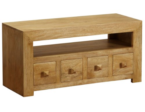 Homescapes - Dakota - TV / DVD 4 Drawer Unit - Oak Finish - 100% Solid Mango Hard Wood - ( No Veneer ) Hand Crafted Furniture